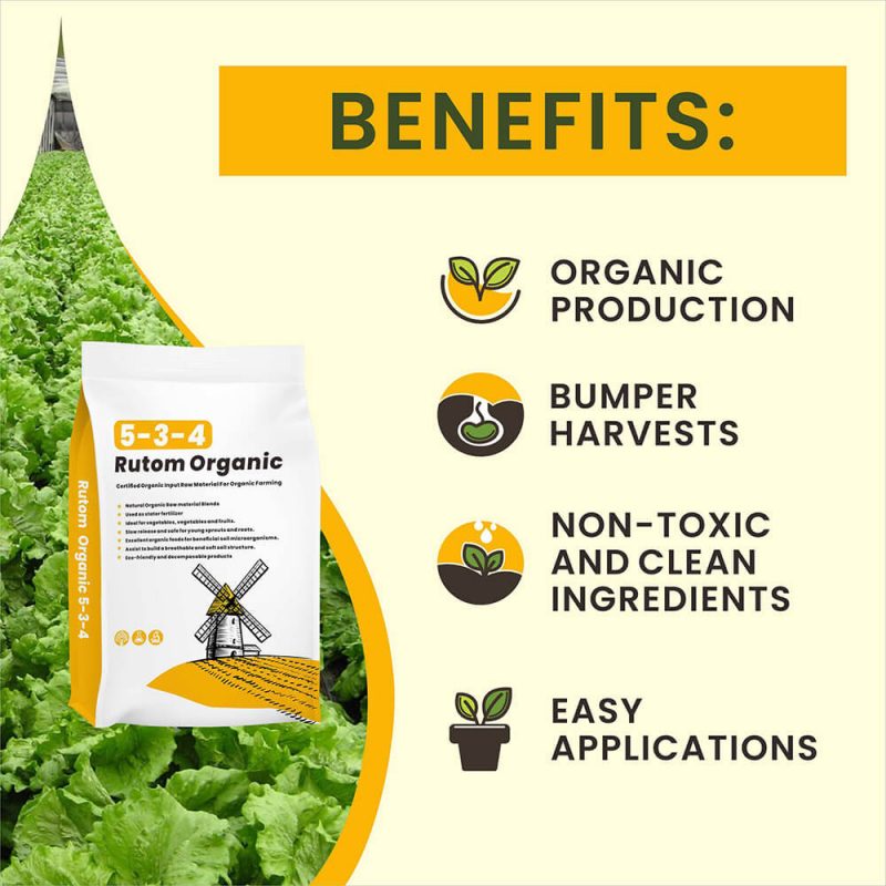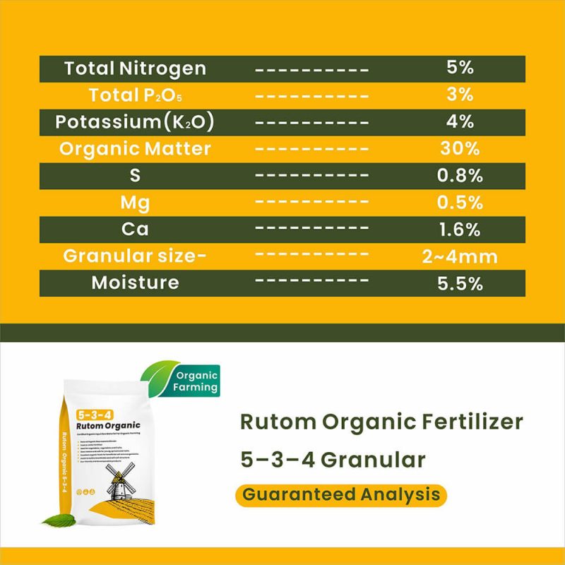 Rutom Organic Fertilizer 5-3-4, Plant Food For Organic Farming